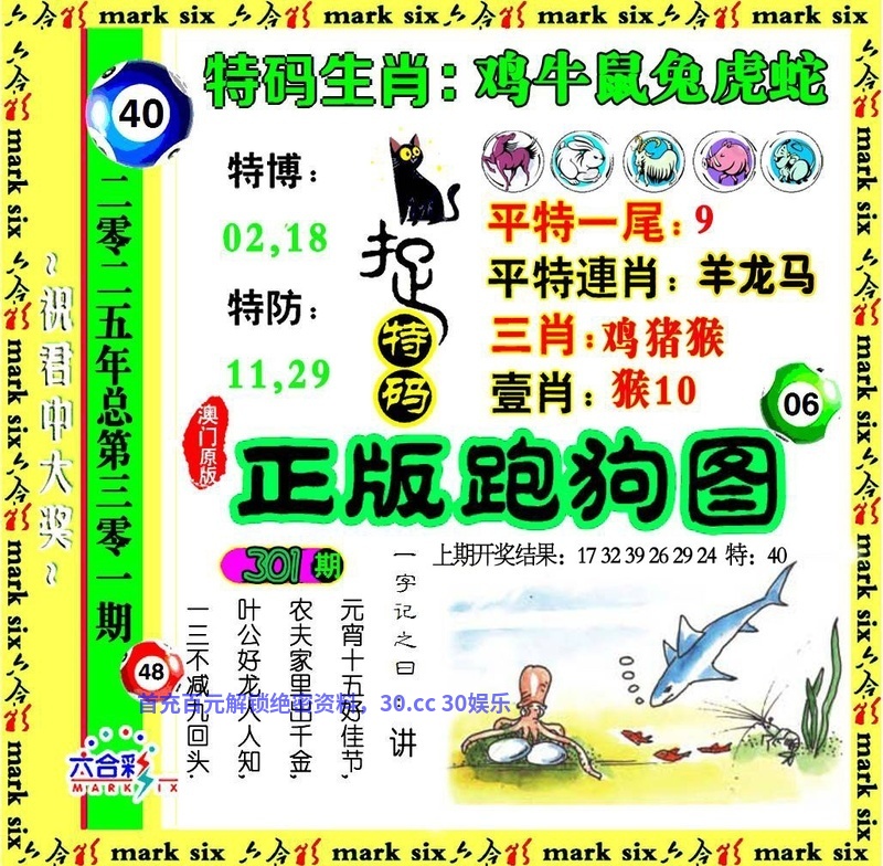 303期九肖鼠鸡猴马龙狗蛇猪兔15中