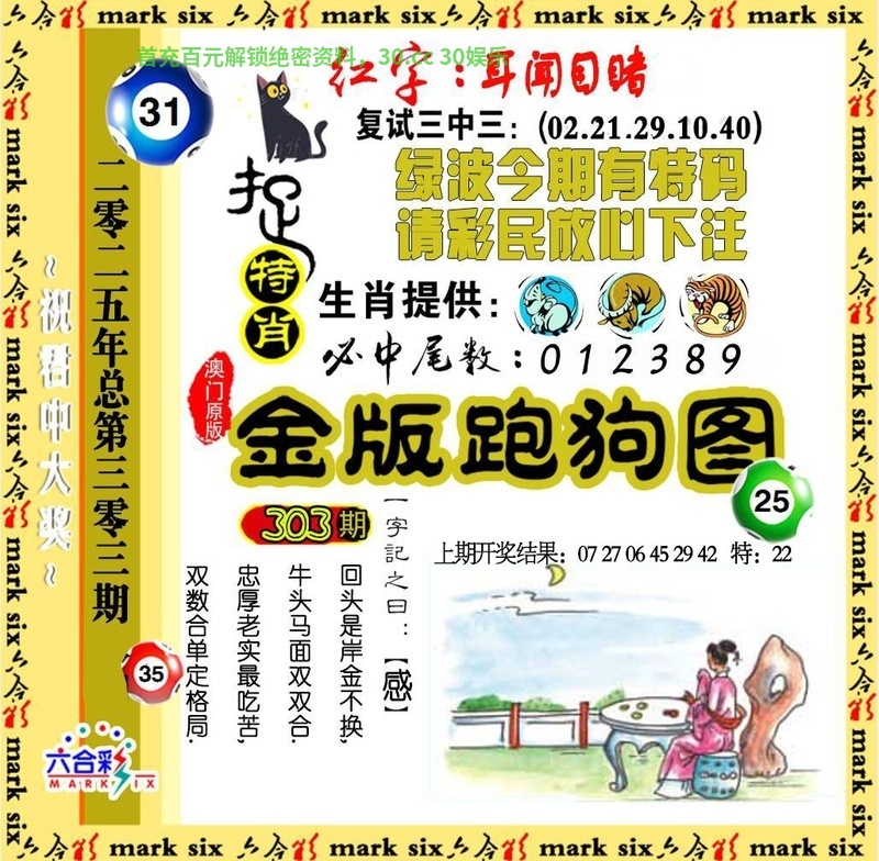 303期⑨码42.21.15.34.36.02.44.25.31兔15中