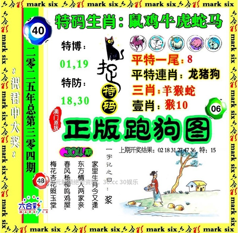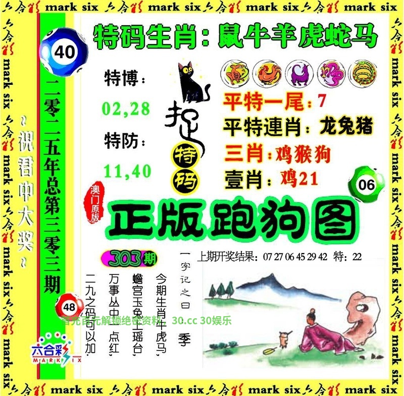 303期:阴阳两肖阳肖+鼠马】开:兔15准